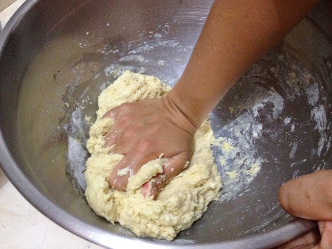 Pengalaman pertama bikin roti, ternyata ga sesusah yg gw kira hehe... ;) gak tau jg sih tapi klo yg gw baca2 dr internet gt bnyk yg bilang klo hand knead itu capek & makan waktu, makanya skrg banyak yg pake stand mixer. Ternyata, nggak juga tuh, gak capek sm skali! mungkin capek kalo lo bikin 100 roti sekaligus kali ya hahahaha...